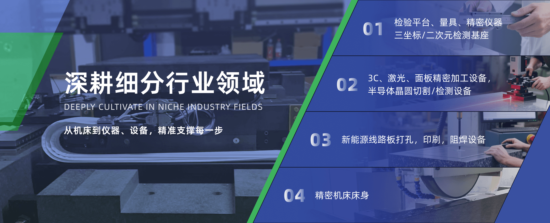 產品廣泛應用于3C、激光、半導體、醫療、新能源、檢測設備、直驅運動平臺、機床、非標自動化設備等領域。自成立以來,公司以“客戶價值為核心,卓越品質為基石,奮力鑄就中國第一”的企業高度,依托先進設備、一流技術與高素質團隊,在石材加工與開發應用領域持續創新,以穩定的產品質量贏得客戶廣泛信任與贊譽。